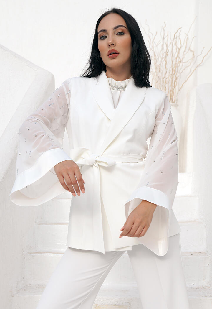 الرئيسيةجاكيت نسائي رسميجاكيت نسائي رسمي0الوصفبليزر رسمي ملتف مع ربطة خصر ، أكمام طويلة واسعة من الشيفون مطرزة بحبات من الكريستال.اللونأسودبيجأبيضالقياسS-36M-38L-40XL-422XL-443XL-46