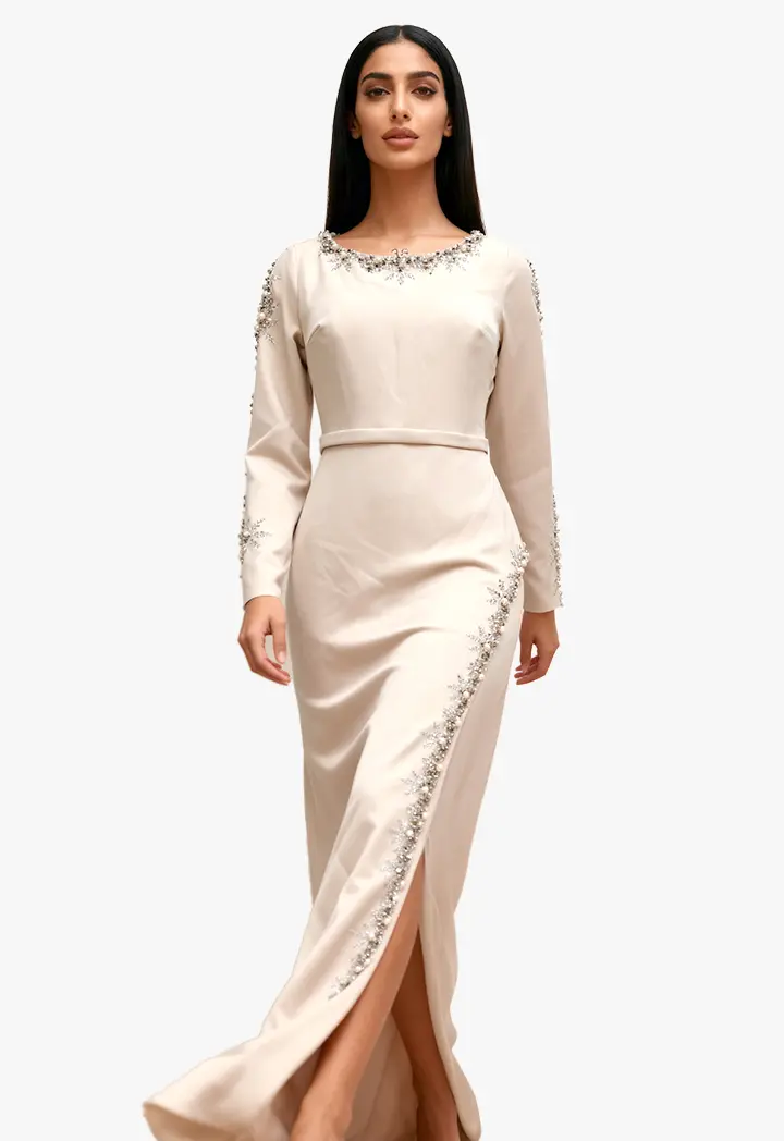فستان طويل - بيج - 44