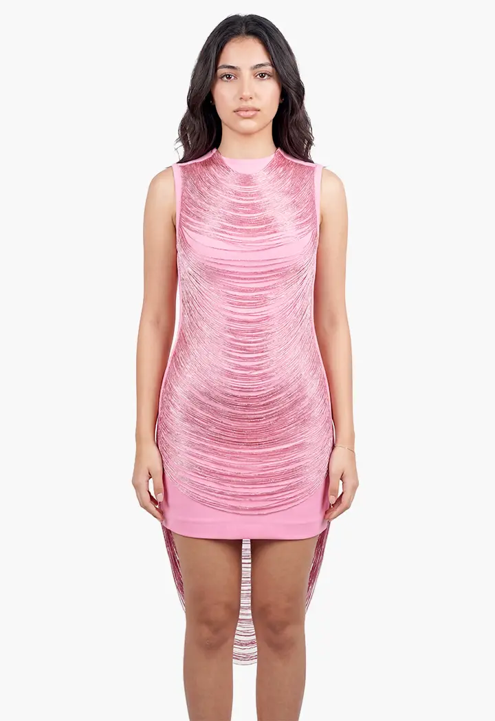 فستان قصير - وردي - 36